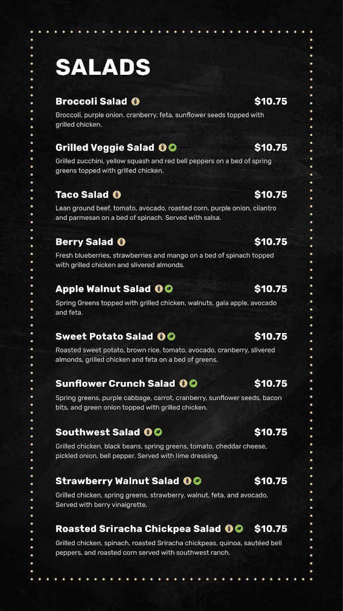 Each dish is carefully crafted with the finest ingredients, bringing vibrant flavors to every bite. You can choose from a selection of homemade dressings, toppings, and proteins to customize your meal just the way you like it. It’s the perfect spot for a quick, wholesome lunch or a dinner that makes you feel good about your choices. No matter what you pick from the menu, you're sure to experience a burst of freshness and taste in every bite.